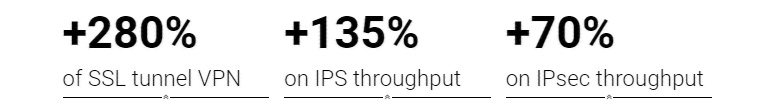 Aumento della capacità dei tunnel VPN: Fino al +280% di connessioni VPN simultanee in più.