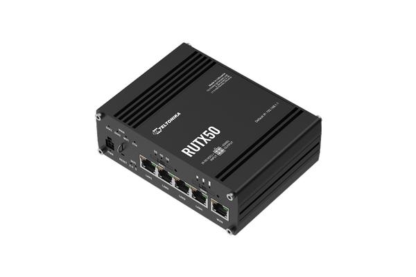 RUTX50 is a dual-SIM and eSIM multi-network router offering 5G mobile communication for high-speed and data-heavy applications. Together with 5x Gigabit Ethernet ports and dual-band Wi-Fi, it provides data connection redundancy with auto-failover. Backward compatibility and multiple interfaces allow for long-term expandability and upgrading options.