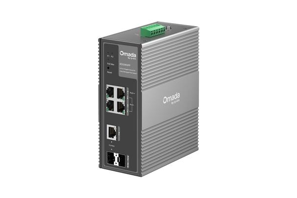 Switch Industriale Easy Managed Gigabit Omada a 6 porte con 3 porte PoE+ e 1 porta PoE++.