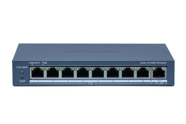 switch L2, Smart Managed, 8 10/100M RJ45 PoE ports, 1 Gigabit RJ45 port, 802.3af/at, PoE power budget 110W, Max. 300 meter long distance PoE transmission, Visualized Topology Management, Network Health Monitor, Real-Time Alarm Push and Video Control and Preview