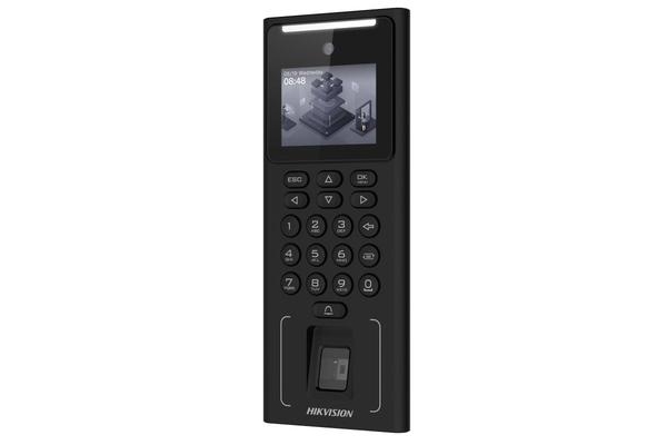 Terminale Hands Free e fingerprint. Display da 2.4 pollici, obiettivo 2 megapixel, luce bianca supplementare. Modulo di lettura schede M Card incorporato. Capacità di memorizzazione Volti: 500, Impronte digitali: 3000, Tessere: 3000. Eventi: 150000. Interfaccia di comunicazione TCP/IP, WiFi, RS-485. Configurazione mediante Web client sia da PC che da smartphone. Supporta Hik-Connect. Alimentazione: 12Vdc / 1A (alimentatore incluso); Supporta ISUP5.0, ISAPI. Tasso di precisione del riconoscimento facciale > 99%. Durata del riconoscimento del volto (1:N) ?0, 2s. Distanza di riconoscimento del volto: 0,3 m ~ 1,5 m. Durata riconoscimento fingerprint: <1s. Interfacce: Lock Control x1, Exit Button x1, Door Contact Input x1, Tamper x1, USB x1. Temperatura di esercizio -10 °C ~ +55 °C. Umidità di esercizio 0% / 90%, . Dimensioni 78x200x28 mm.