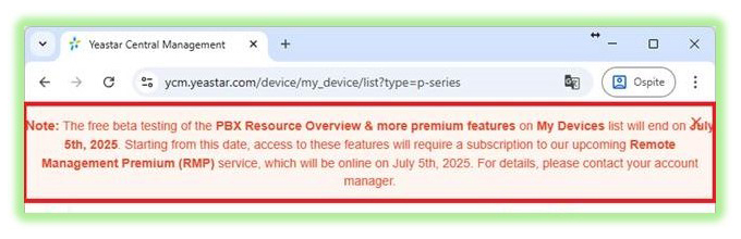 - Dagli ultimi mesi del 2024, a tutti coloro che avevano acquistato il Remote Management, Yeastar aveva implementato di default, alcune funzionalità "Premium" in modalità Beta (che sono le stesse di cui parleremo in questa email)
